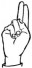 На ћирилици написано ЂЕНАДИЈА МИЛИВОЈЕВИЋ састоји се из 19 слова [?]. Исписано ћириличном једноручном азбуком за глувонеме: